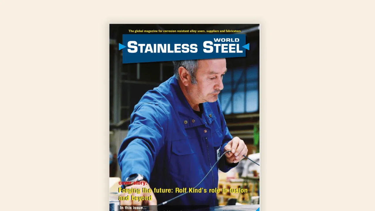 Article de couverture du magazine spécialisé international Stainless Steel World sur Rolf Kind GmbH, de la révolution énergétique aux aimants supraconducteurs pour les centrales électriques à fusion. (En allemand)