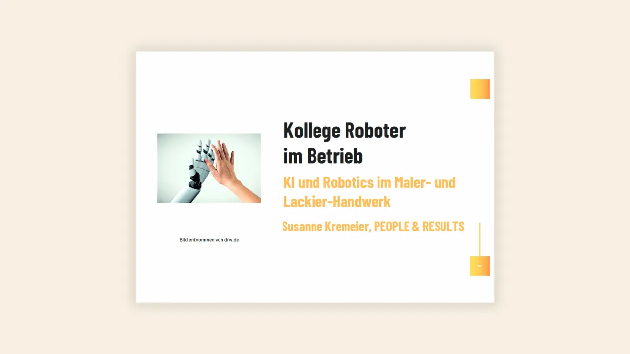 Présentation à la Sikkens Academy. Comment l'IA et la robotique rendent l'artisanat plus productif, plus durable et plus attrayant pour les jeunes professionnels. (En allemand)