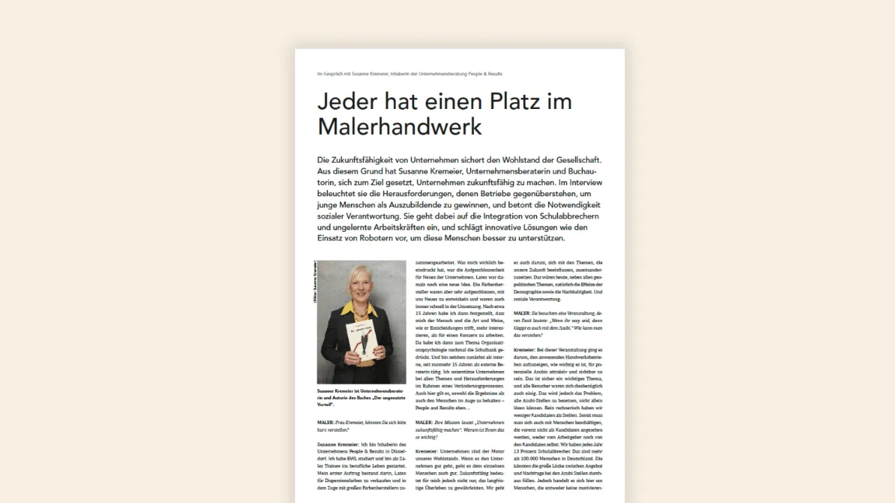 La voie vers votre propre cabinet de conseil en management, la création de PEOPLE & RESULTS et les leçons de plus de 25 ans d'expérience pratique. Entretien dans le magazine BVMW. (En allemand)